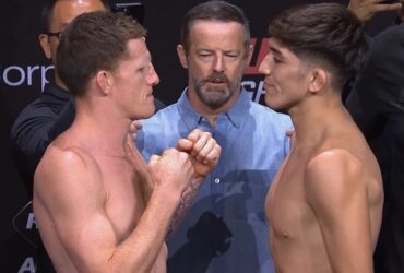 जेमी मुलार्की और रोलैंडो बेदोया, यूएफसी पर्थ सेरेमोनियल वेट-इन क्रेडिट: YouTube/UFC ...