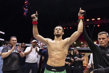 उस्मान नूरमगोमेदोव दुबई के पीएफएल रोड पर अपना हल्का बेल्ट दांव ...
