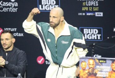 अलेक्जेंडर वोल्कानोवस्की, यूएफसी 314 प्रेस कॉन्फ्रेंस श्रेय: जे एंडरसन/केजसाइड प्रेस अलेक्जेंडर ...
