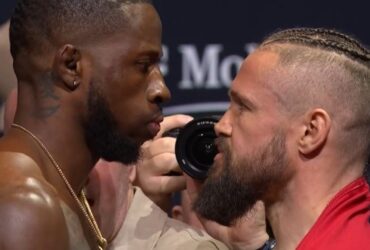 रैंडी ब्राउन और निकोलस डल्बी, UFC कैनसस सिटी वेट-इन क्रेडिट: YouTube/UFC ...