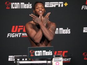UFC 318 वेट-इन में, न्यू ऑरलियन्स में शुक्रवार को स्केल पर ...