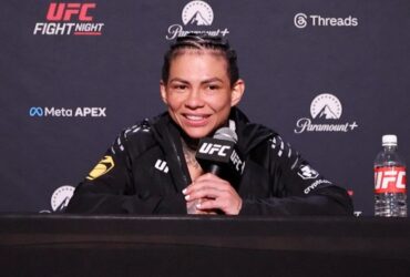 केटलेन सूजा यूएफसी वेगास 113 में दीवार के सहारे अपनी पीठ ...